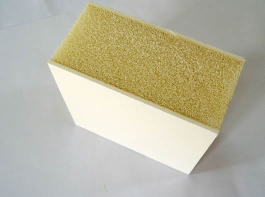 1、硬质聚氨酯导热系数低,热工性能好。当硬质聚氨酯密度为35~40kg/m3时,导热系数仅为0.018~0.024w/(m.k),约相当于EPS的一半,是目前所有保温材料中导热系数最低的。 2、硬质聚氨酯具有防潮、防水性能。硬质聚氨酯的闭孔率在90%以上,属于憎水性材料,不会因吸潮增大导热系数,墙面也不会渗水。 3、硬质聚氨酯防火,阻燃,耐高温。聚氨酯在添加阻燃剂后,是一种难燃的自熄性材料,它的软化点可达到250摄氏度以上,仅在较高温度时才会出现分解:另外,聚氨酯在燃烧时会在其泡沫表面形成积碳,这层积碳有助隔离下面的泡沫。能有效地防止火焰蔓延。而且,聚氨酯在高温下也不产生有害气体。 4、由于聚氨酯板材具有优良的隔热性能,在达到同样保温要求下,可使减少建筑物外围护结构厚度,从而增加室内使用面积。 5、抗变形能力强,不易开裂,饰面稳定、安全。 6、聚氨酯材料孔隙率结构稳定,基本上是闭孔结构,不仅保温性能优良,而且抗冻融、吸声性也好。硬泡聚氨酯保温构造的平均寿命,在正常使用与维修的条件下,能达到30年以上。能够做到在结构的寿命期正常使用条件下,在干燥、潮湿或电化腐蚀,以及由于昆虫、真菌或藻类生长或者由于啮齿动物的破坏等外因影响,都不会受到破坏。 7、综合性价比低。虽然硬质聚氨酯泡沫材的单价比其它传统保温材料的单价高,但增加的费用将会由供暖和制冷费用的大幅度减少而抵消。 产品用途 可广泛用于彩钢夹芯板、中央空调、建筑墙体材料、冷库、冷藏室、保温箱、化工罐体等领域。 产品特点: ● 规格品种多,容重范围:(40—60kg/m3);长度范围:(0.5米—4米);宽度范围:(0.5米—1.2米);厚度范围:(20毫米—200毫米)。 ● 切割精度高,厚度误差士0.5mm,从而保证了制成品表面的平整度。 ● 泡沫细密,泡孔均匀。 ● 容重轻,可以减少制成品的自重量,比传统的产品低30—60%。 ● 抗压强度大,可以承受在制造成品过程中的巨大压力。 ● 方便质量的检验,由于在切割过程中去掉了四周的表皮,板材的质量一目了然,保证了制成品的保温效果。 厚度可按用户要求生产加工。
