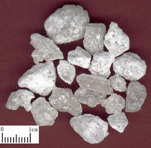 ![]() 芒硝(十水合硫酸钠Na2SO4·10H2O) 拼音:mángxiāo 英文:mirabilite 功效分类:泻下药;清热药。生态环境:多产于海边碱土地区、矿泉、盐场附近较潮湿的山洞中。 资源分布:分布于内蒙古、河北、天津、山西、陕西、青海、新疆、山东、江苏、安徽、河南、湖北、福建、四川、贵州、云南等地。 ![]() ![]() 工业应用:芒硝广泛应用于各种工业品的干燥过程中。 炮制方法: 1、取天然产的芒硝,用热水溶解,过滤,放冷即析出结晶,通称朴硝。再取萝卜洗净切片,置锅内加水煮透后,加入朴硝共煮,至完全溶化,取出过滤或澄清后取上层液,放冷,待析出结晶,干燥后即为芒硝(每朴硝100斤,用萝卜10-20斤)。 2、也有取天然产的芒硝,经煮炼、过滤,冷却后,取上层的结晶为芒硝,下层的结晶为朴硝。 芒硝经加工精制而成的结晶体。芒硝的晶体为短柱状或针状,一般这些晶体聚集在一起成块状、纤维团簇状。它们或无色或白色,具有玻璃光泽,入水即化。芒硝在干燥的环境下会失去水分而变成数粉末状,这时就称为无水芒硝。芒硝可以用来提取硫酸铵、硫酸钠、硫酸及硫化钠等化工原料,还是制造洗衣粉的重要原料。中国芒硝分布较多。也作硭硝。含有结晶水的硫酸钠的俗称。化学式Na2SO4·10H2O。无色晶体,易溶于水。用于制革、制玻璃、制碱工业等,也用作泻药。硫酸盐类矿物芒硝,经加工精制而成的结晶体。 芒硝出自《名医别录》 《雷公炮炙论》:凡使芒硝,先以水飞过,角五重纸滴过去脚,于铛中干之,方入乳钵研如粉,任用。陶弘景:按《神农本经》无芒硝,只有消石名芒消尔。后名医别载此说,其疗与消石正同,疑此即是消石。旧出宁州,黄白粒大,味极辛苦。顷来宁州道断都绝。今医家多用煮炼作者,色全白,粒细而味不甚烈,此云生于朴消,则作者亦好。《唐本草》:晋宋古方多用消石,少用芒硝,近代诸医,但用芒消,鲜言消石,岂古人昧于芒消也。《本经》云,生于朴消,朴消一名消石朴,消石一名芒消。 《开宝本草》:芒消,此即出于朴消,以暖水淋朴硝取汁炼之令减半,投于盆中,经宿乃有细芒生,故谓之芒消也。又有英消者,其状若白石英,作四、五棱,白色莹澈可爱,主疗与芒消颇同,亦出于朴消,其煎炼自别有法,亦呼为马牙消。 性状 ![]() 单斜晶系,晶体呈短柱状或针状;通常成致密块状、纤维状集合体。无色或白色,玻璃光泽,具完全的板面解理,莫氏硬度1.5~2,比重1.48。味清凉略苦咸,极易潮解,在干燥的空气中逐渐失去水分而转变为白色粉末状的无水芒硝。本品为棱柱状、长方形或不规则块状及粒状。无色透明或类白色半透明。质脆,易碎,断面呈下班样光泽。无臭,味咸苦。如不密闭保存,可风化而成白色粉末(即元明粉)。 产地 ![]() 产于干涸的盐湖中,与石盐、石膏等共生。现代芒硝矿床产于内陆湖泊和海滨半封闭的海湾潟湖里,在干燥炎热的条件下,温度在33℃以上蒸发时,形成无水芒硝;在33℃以下或秋冬气温下降时,形成芒硝。 世界上芒硝湖的分布,以中国和俄罗斯较多。中国主要分布在西藏 、内蒙古、黑龙江 、山西、吉林等省、区。古代芒硝矿床产在陆相湖泊沉积岩系里,一般在红色砂页岩系中呈透镜状产出。中国湖北省的储量居全国之首。工业矿物原料所指芒硝,常包含无水芒硝和钙芒硝,用以制取硫酸铵、硫酸钠、硫酸及硫化钠等化工原料。其中用于制造洗衣粉的芒硝占总用量的65%~70%。美国加利福尼亚州、怀俄明州,以及美国西南部、西部其他地区富产芒硝,也产生于奥地利、西班牙,在波希米亚以及里海的卡拉博加兹戈尔湾也有丰富的矿藏。 药用 基本信息 ![]() 性味与归经:咸、苦,寒。归胃经;肺经;脾经;肾经;小肠经;三焦经;大肠经。 功能与主治:泻热通便,润燥软坚,清火消肿。用于实热便秘,大便燥结,积滞腹痛,肠痈肿痛;外治乳痈,痔疮肿痛。适应症:1.用于便秘、肠内异常发酵,亦可与驱虫剂并用;与活性炭合用,可治疗食物或药物中毒。 2.用于阻塞性黄疸及慢性胆囊炎。 3.用于惊厥、子痫、尿毒症、破伤风、高血压脑病及急性肾性高血压危象等。 4.也用于发作频繁而其他治疗效果不好的心绞痛病人,对伴有高血压的病人效果较好。 5.外用热敷,消炎去肿。 用法及用量:6-15克,不入煎剂,以药汁或开水溶化后服。外用适量,包敷患处。 注意:脾胃虚寒及孕妇禁用。 贮藏:密闭,在30℃以下保存,防风化。 规格:每次15~20克,便秘可用3%~5%水溶液,于清晨空腹服。 药材基源:为矿物芒硝经煮炼而得的精制结晶。 药理作用 泻下作用:芒消系含有杂质的硫酸钠,玄明粉则系纯粹的硫酸钠,内服后其硫酸离子不易被肠粘膜吸收,存留肠内成为高渗溶液,使肠内水分增加,引起机械刺激,促进肠蠕动。盐类对肠粘膜也有化学刺激作用,但并不损害肠粘膜。过浓的溶液到达十二指肠时,可引起幽门痉挛,从而延迟全部药物从胃中排空,同时可将组织中的水分吸入肠管,故服时应饮大量的水以稀释之。服后4-6小时发生下泻作用,排出流体粪便。如用以治疗组织水肿,需少饮水。 减轻阑尾炎症:实验性阑尾炎和阑尾穿孔的家兔,腹部外敷大黄、芒消、大蒜加适量食醋的糊剂,对阑尾及脾脏的网状内皮系统有明显的刺激作用,使其增生现象与吞噬能力有所增强,阑尾炎症较对照组明显减轻。 引起肠道神经反射:正常家兔右下腹部外敷大蒜芒消糊剂,局部皮肤有发热、发红、起水疱等刺激症状,小肠及阑尾、袋状