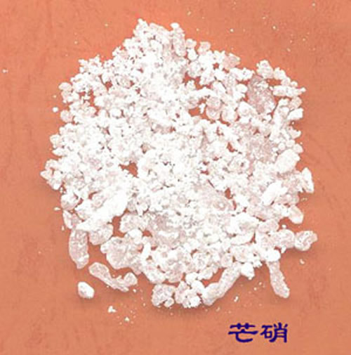 芒硝,别名硫酸钠,芒硝。外文名Sodium Sulfate。芒硝一种分布很广泛的硫酸盐矿物,是硫酸盐类矿物芒硝经加工精制而成的结晶体。可以主治破痞,温中,消食,逐水,缓泻。用于胃脘痞,食痞,消化不良,浮肿,水肿,乳肿,闭经,便秘。在干旱地区,常可以见到由它们形成的盐华及皮壳。盐湖、盐泉和干盐湖是形成芒硝的地方。